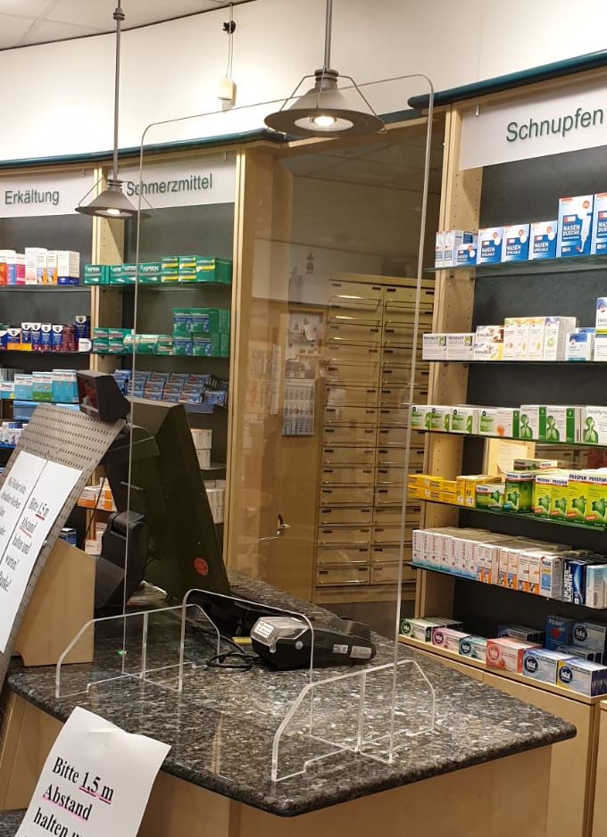 Aufgrund der außergewöhlichen Situation produzieren wir Hustenschutze nach Wunsch für Apotheken, Ärzte, Einzelhandel und alle Anderen, die am Arbeitsplatz Kontakt zu vielen Menschen haben und besonders geschützt werden müssen. Wir bearbeiten diese Bestellungen mit Vorrang und bemühen uns um sehr kurze Lieferzeiten.
